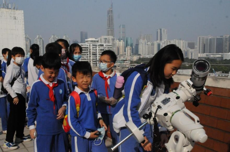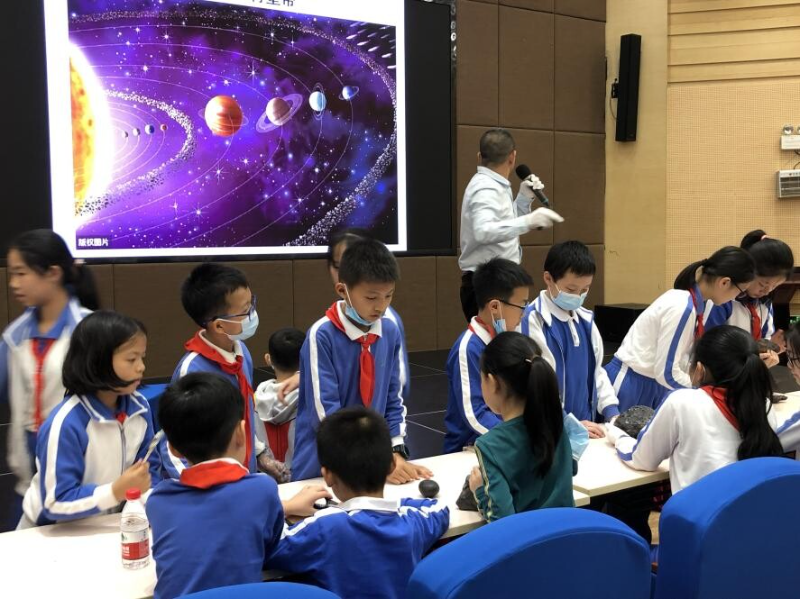 为配合“天宫课堂”,深圳市科学馆精心组织暖场活动,从14:30开始,围绕“天文地理”主题,通过“观测生命之源——太阳”“探究天外来客——陨石”“体验地球之怒——地震”和欣赏《光荣和梦想之诗》等特色活动,普及科学知识,激发科学兴趣,为后续的“学习”环节营造求知探索的氛围。