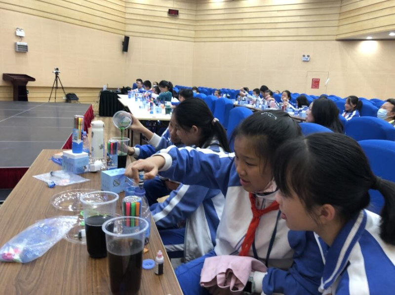 15:40,天宫课堂正式开始,3名航天员在轨介绍展示中国空间站工作生活场景,演示微重力环境下细胞学实验、物体运动、液体表面张力等现象,并与地面课堂进行实时交流,分享载人航天知识,激发青少年对科学的兴趣。课堂上,中国航天员邀请广大青少年在地面同步尝试开展相关实验,深圳市科学馆分会场的同学们利用组织方免费提供的实验器材包,动手动脑,感知宇宙奥秘,体验探索乐趣。