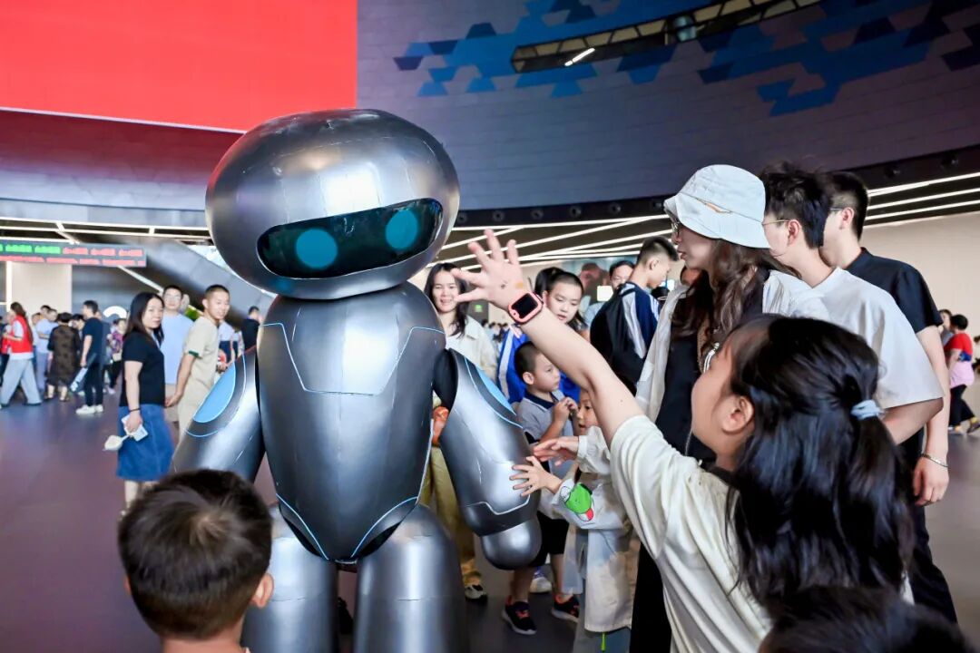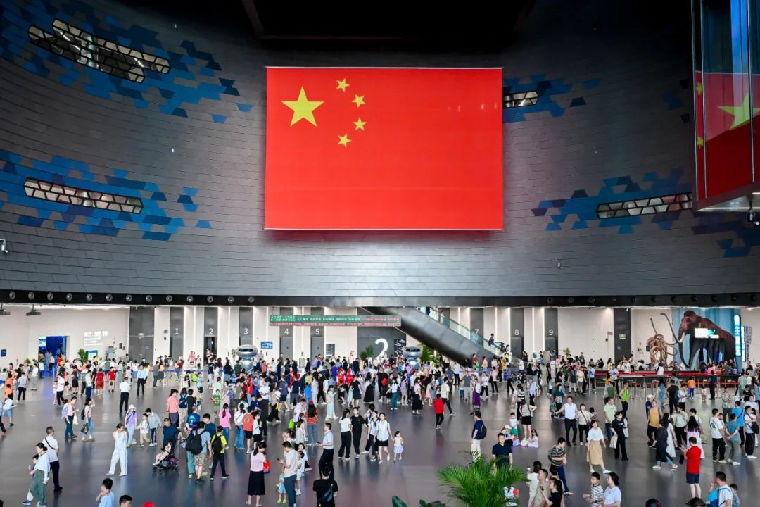 不只是“人气旺”,深圳科学技术馆更让科技知识活了起来,围绕航空航天、人工智能等领域,接连开展科普讲座、互动实验等活动2800余场,23万观众深度参与。“以前在课本里了解的‘人工智能算法’,今天亲手调试机器人,才真懂了啥叫科技!”刚结束互动实验的初中生杨同学眼里满是兴奋。馆内文创商店、特色餐饮等配套同步运营,“买个机器狗,吃份‘星球蛋糕’,连细节都透着科技感。”来自北京的游客张先生笑着展示手中的文创产品。