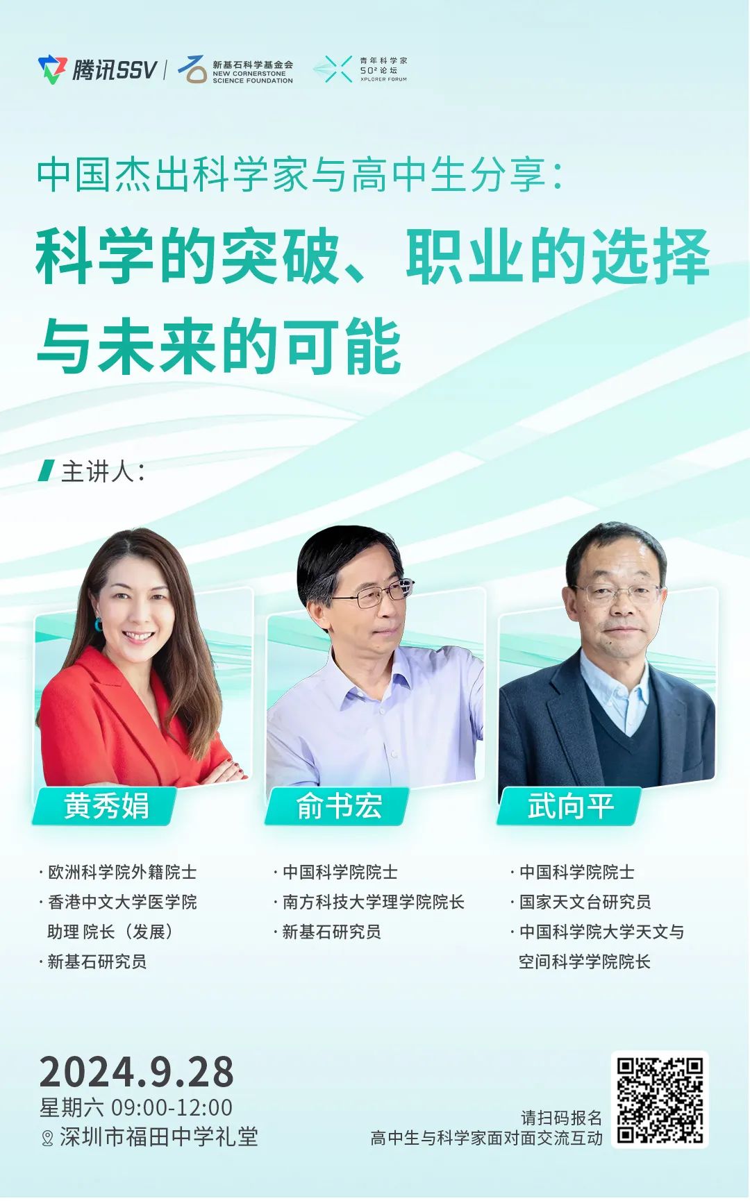 作为目前国内最大的公益性科学基金会之一,“新基石科学基金会”由腾讯公司发起,10年内出资100亿元人民币,独立运营。基金会希望通过一系列高中生科学生涯教育科普讲座,让年轻人们能和杰出科学家们的“零距离”面对面,走近科学家,揭开科学研究的“神秘面纱”。
