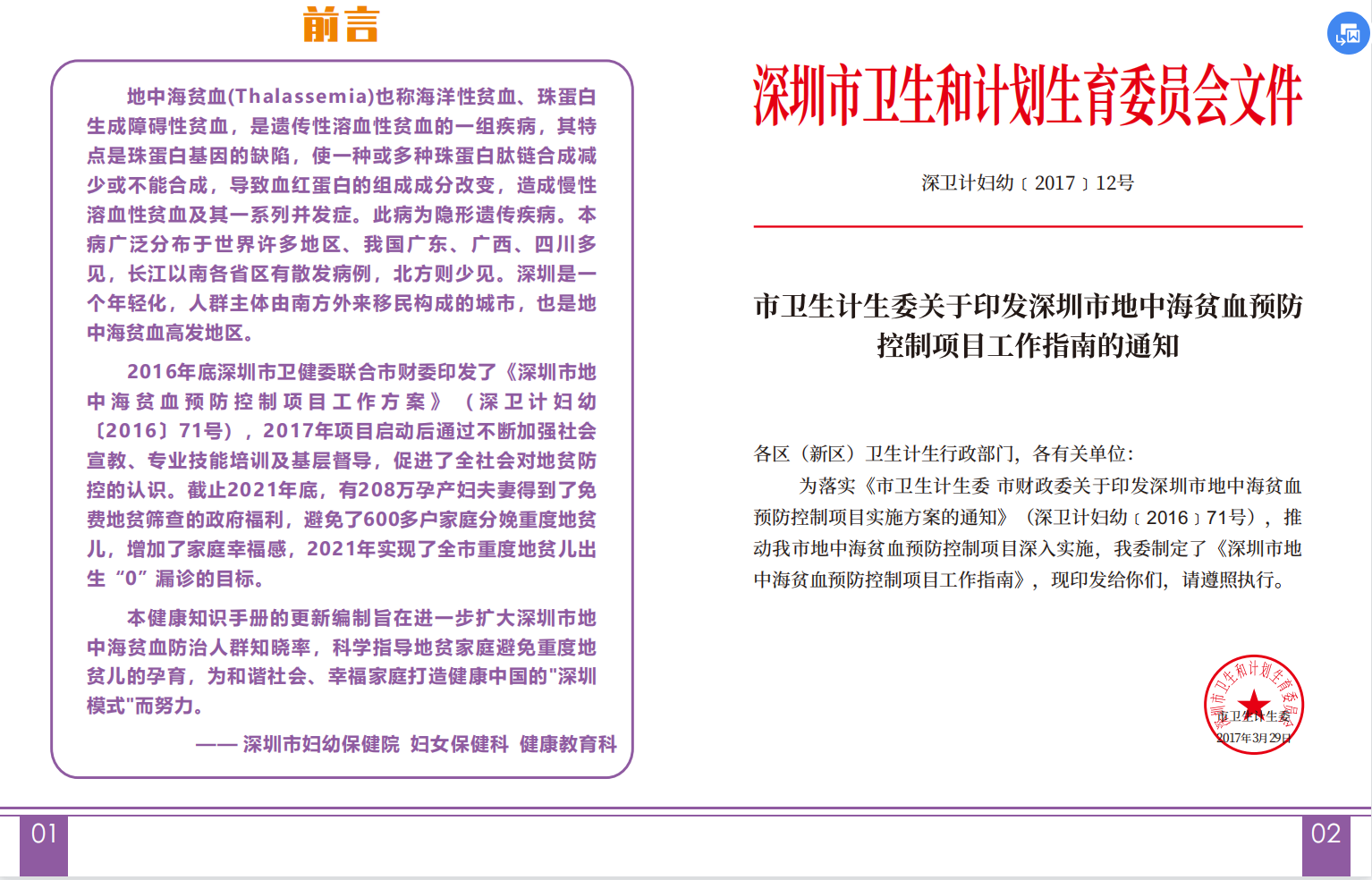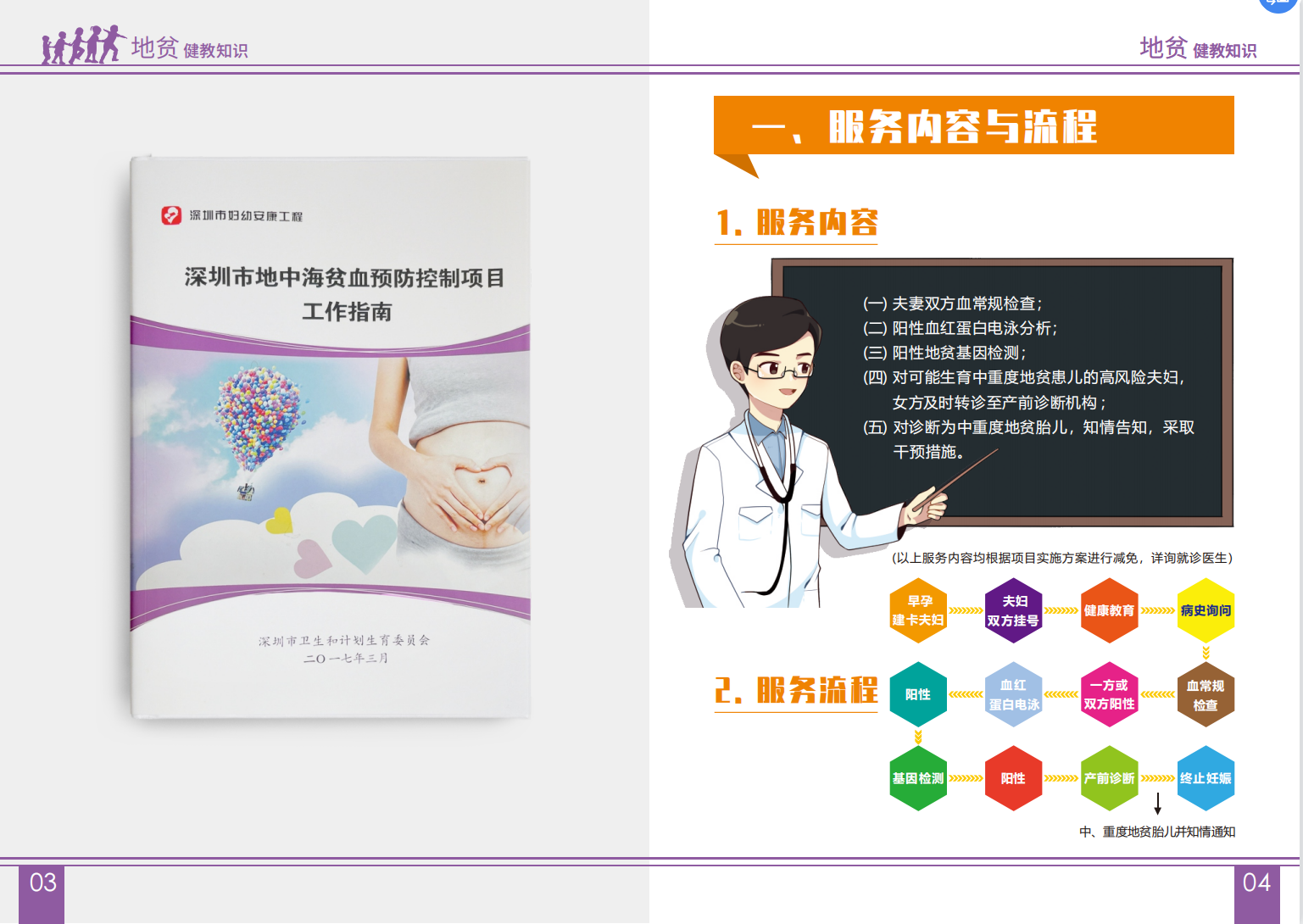《关爱地贫儿,一起向未来》宣教手册鲜明的介绍了地中海贫血概况、地贫基因是如何遗传的、遗传的概率、产前诊断检查的必要性及如何生育健康小孩等,并附上全市助产机构开展地贫项目的机构名称及服务项目种类,为广大的百姓提供了关于地贫的重要防控知识。