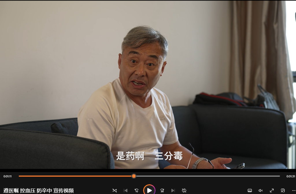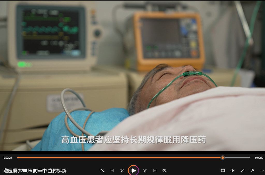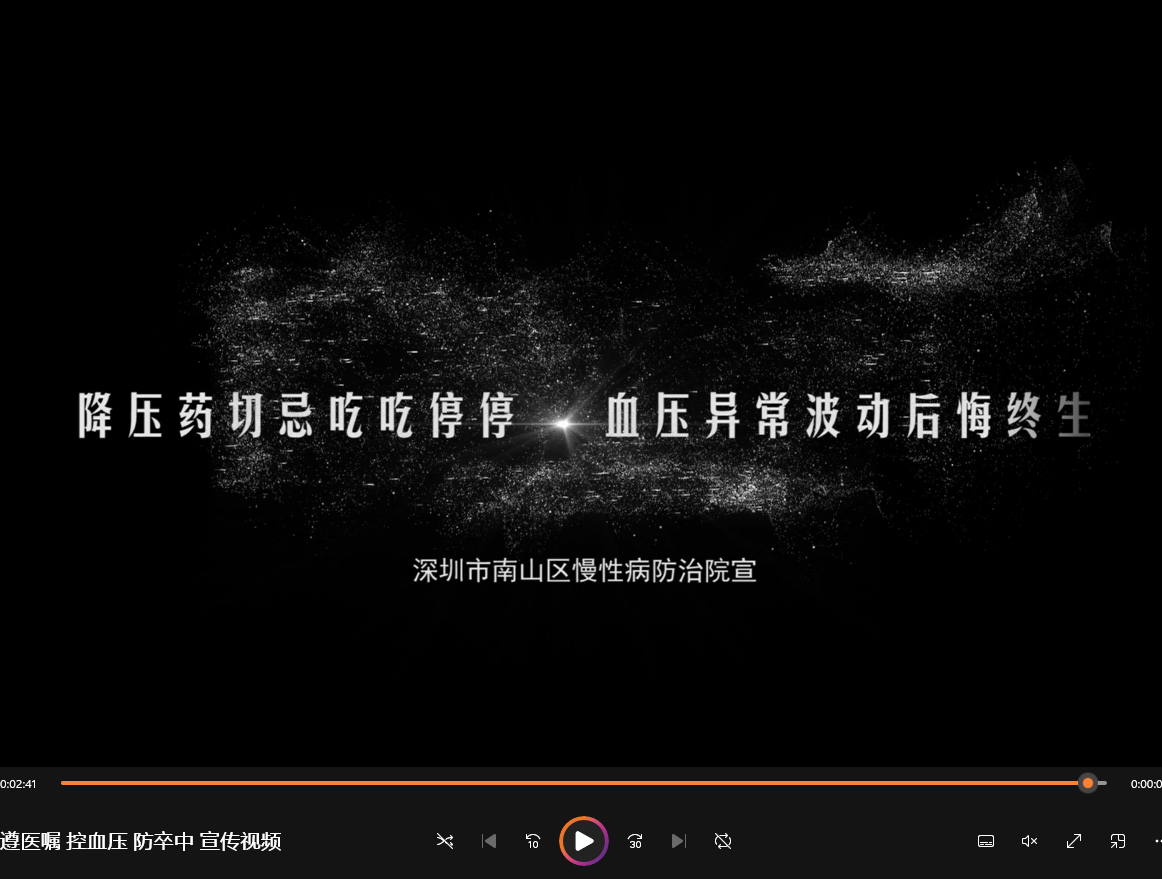 高血压是常见的慢性非传染性疾病,在我国患病人数已超过2亿,且我国人群高血压的患病率仍呈升高趋势。血压水平与心脑血管病发病和死亡风险之间关系密切,血压控制不佳会增加患者罹患脑卒中等心脑血管疾病的风险和死亡风险,因而控制高血压是降低心脑血管疾病发病率、致残率和死亡率的有效措施,规律服用降压药物是有效控制血压的关键因素。通过将视频在南山区各社康中心循环滚动播放,达到提高患者规律服药的意识,达到控制血压、预防脑卒中的目的。