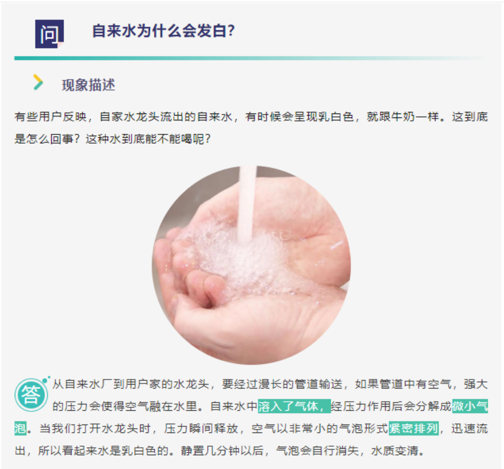 基本信息:| 科普资源名称 | 你问我答 | 我家自来水为什么会发白、发黄、发浑、发蓝? |