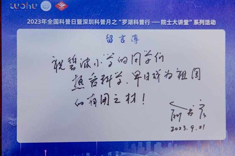 921日,2023年全国科普日暨深圳科普月之“罗湖科普行——院士大讲堂”系列活动在深圳市碧波小学举行。