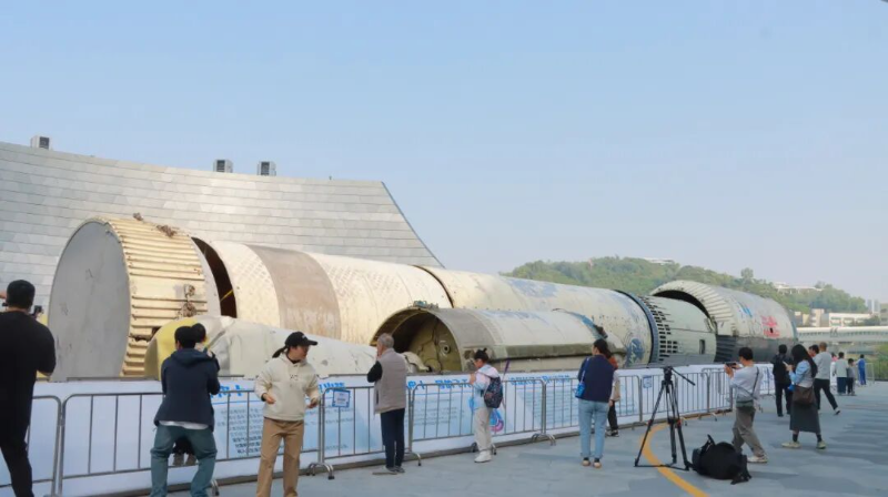 与探月工程成就展交相辉映的 “大国重器 -中国航天实物展”,以“航天实物”为核心亮点,通过陈列功勋航天装备,直观展现中国航天运载工具的发展实力与技术突破。展览现场,被誉为“神箭”的长征二号F遥十一运载火箭回收部件震撼登场 —— 作为我国载人航天工程的核心运载工具,该火箭曾圆满完成2016年飞行任务,全程见证中国航天员景海鹏、陈冬迈向太空的关键征程,其金属外壳上的使用痕迹,更成为航天人攻坚克难的 “立体勋章”。